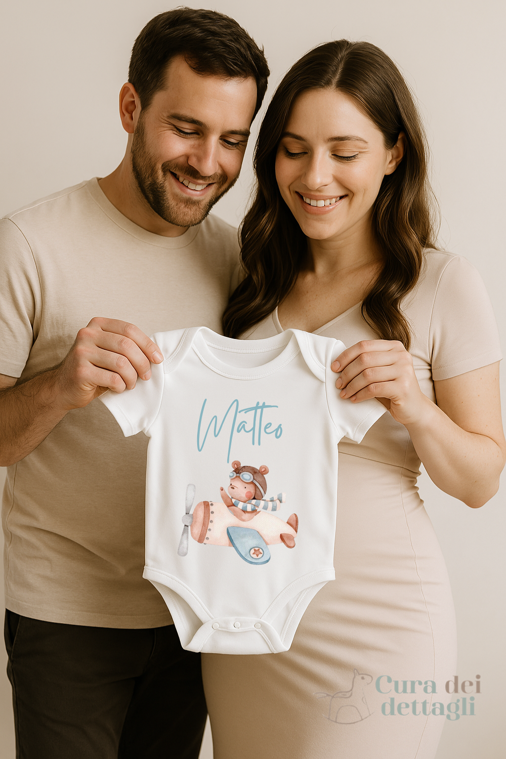 Personalizza il body con il nome e una dolcissima grafica: un dettaglio unico per un momento indimenticabile.