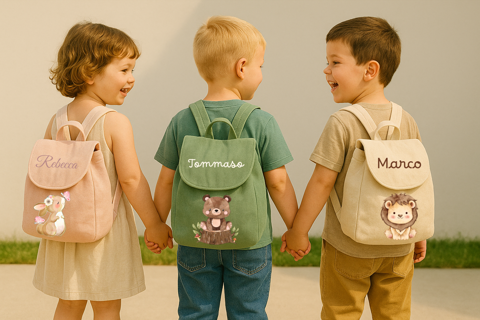 Set Asilo Personalizzato: Zainetto, Pochette e Sacca Cambio per Bambini