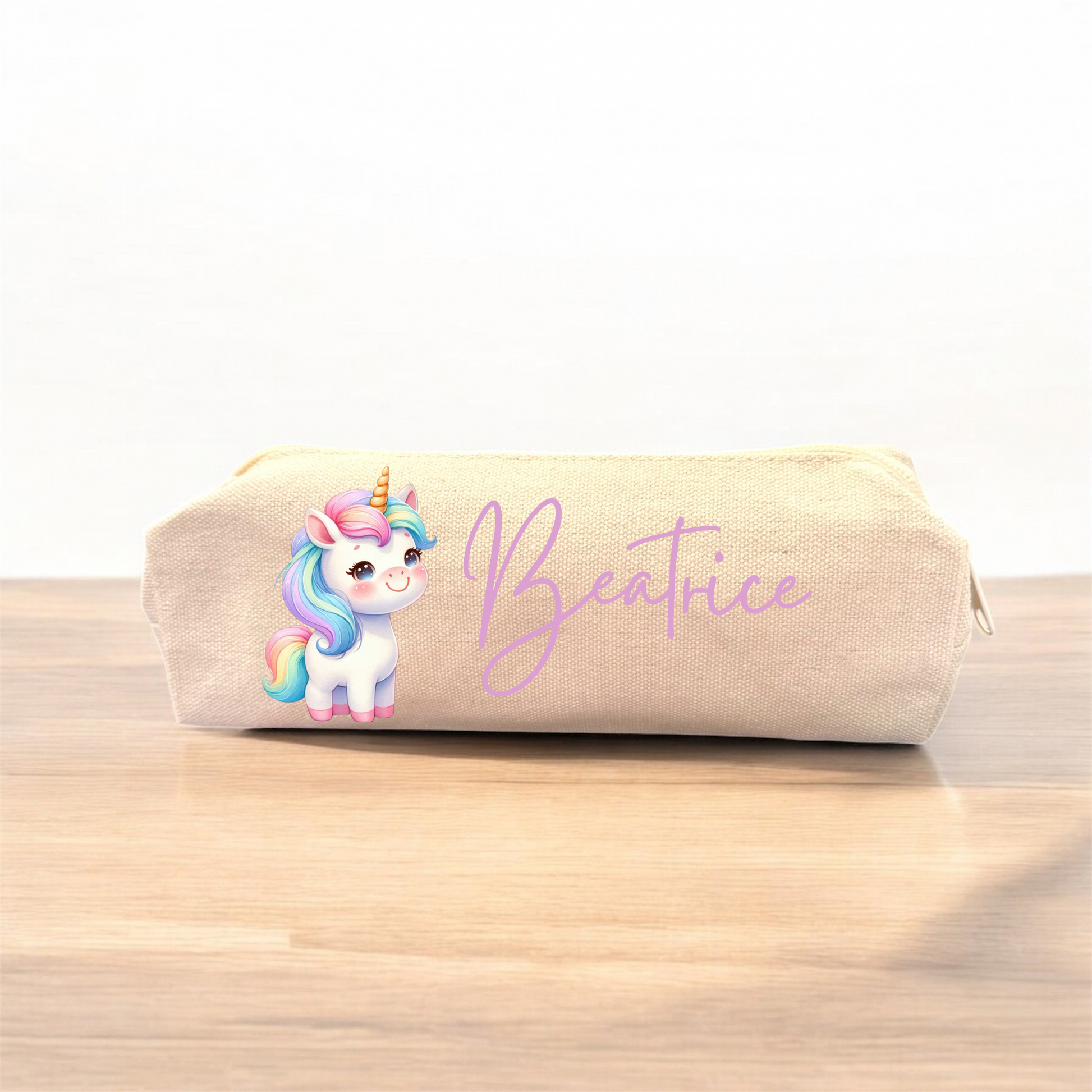 Realizzato in cotone riciclato, questo astuccio è perfetto per custodire colori, matite o piccoli oggetti, accompagnando i bambini a scuola o nelle attività quotidiane.