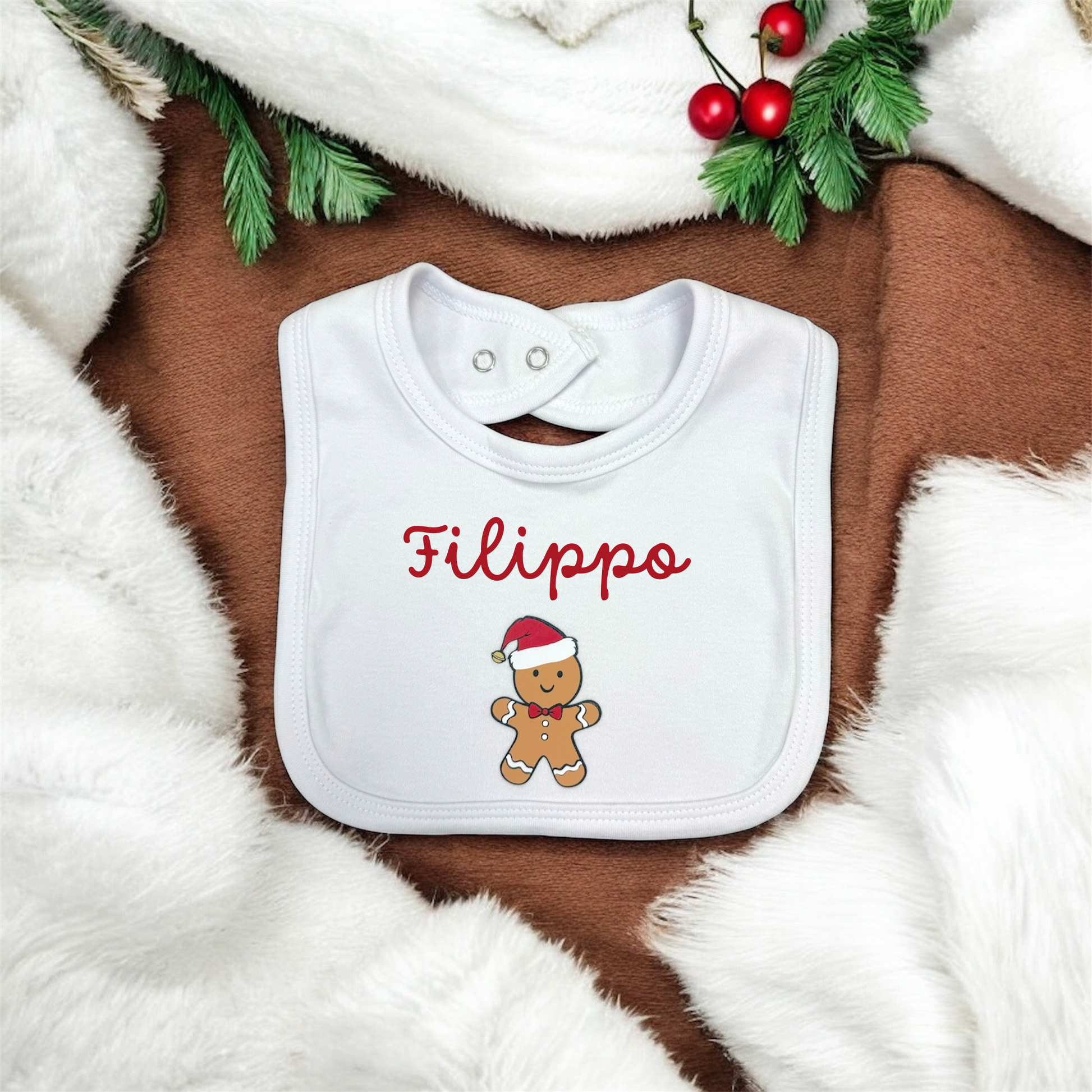 Bavaglino natalizio “Pan di Zenzero” – Personalizzato con nome