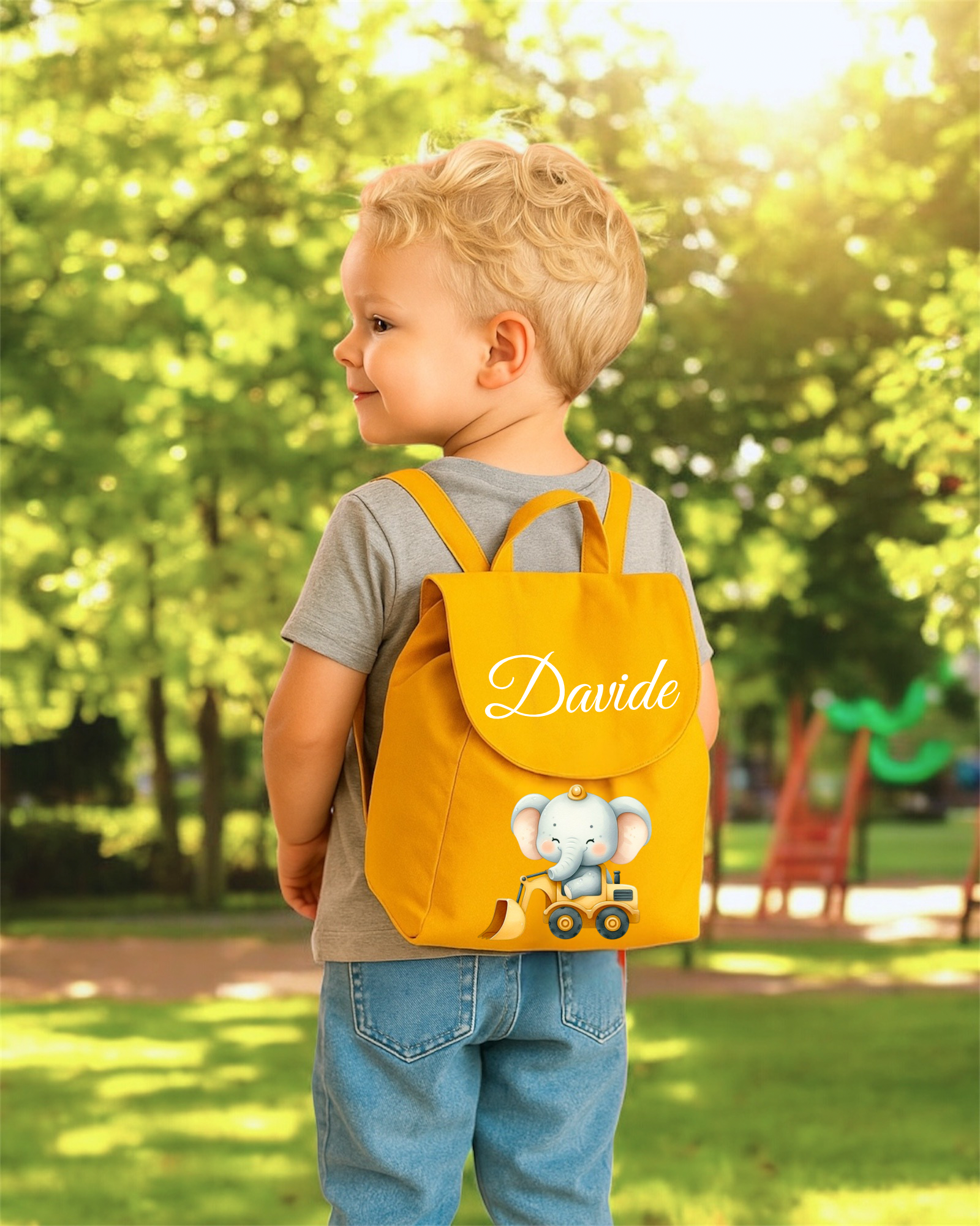 Questo zainetto per l'asilo personalizzato è un accessorio pratico e allegro, pensato per i più piccoli. Realizzato in tessuti resistenti e leggeri, presenta diverse grafiche colorate e un design divertente che può includere il nome del bambino, rendendolo unico e facilmente riconoscibile.
